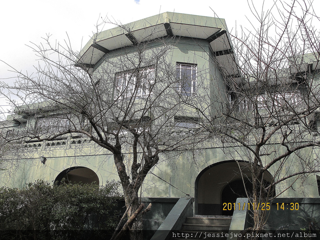 前身為蔣公行館中興賓館,為隱蔽於山林間,建物與週邊設施全刻意漆上綠色